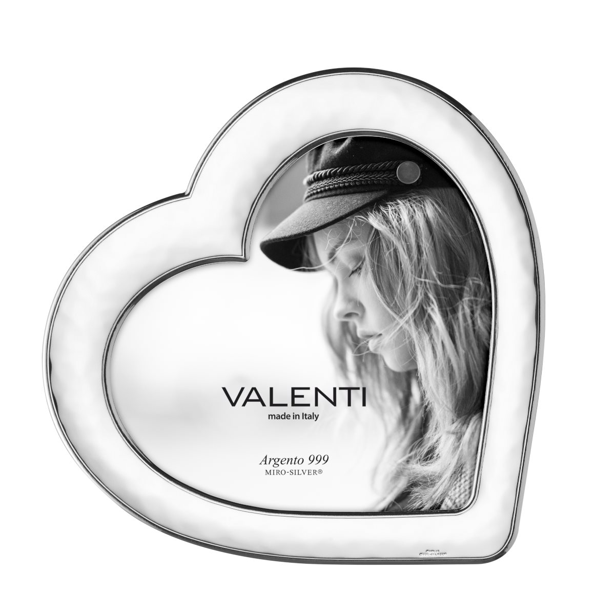 Se il cuore è il posto più sicuro dove custodire i nostri ricordi più preziosi, una cornice a cuore sarà quello più adatto a contenere gli scatti che li immortalano! Valenti propone un portafoto moderno in due formati, di cui il più grande è pensato per ospitare una fotografia della dimensione di 20 cm X 20 cm. La lastra di metallo, da cui è ricavato il cuore, è lavorata con la finitura Miro Silver, un procedimento elettrogalvanico che permette di trasferire le particelle d’argento sugli oggetti, garantendo la conservazione della loro lucentezza nel tempo. La superficie dell’argento laminato presenta una leggera ed elegante martellatura. La larghezza del bordo consente di personalizzare la cornice con un’incisione – un nome, un monogramma o una breve dedica, ad esempio- rendendola un’idea regalo originale, consigliata anche per occasioni speciali come matrimoni o anniversari. Il design pulito ed essenziale, così come il retro in legno bianco, attribuiscono al portafoto una versatilità che lo rende adatto a tutti i tipi di arredamento, da quelli classici a quelli più moderni. Prodotto interamente in Italia con materiali di alta qualità e lavorazioni artigianali e accurate, viene fornito in scatola originale, corredata di logo e garanzia Valenti. Per mantenere inalterate le caratteristiche dell’oggetto, se ne consiglia la pulizia con un panno morbido e asciutto.