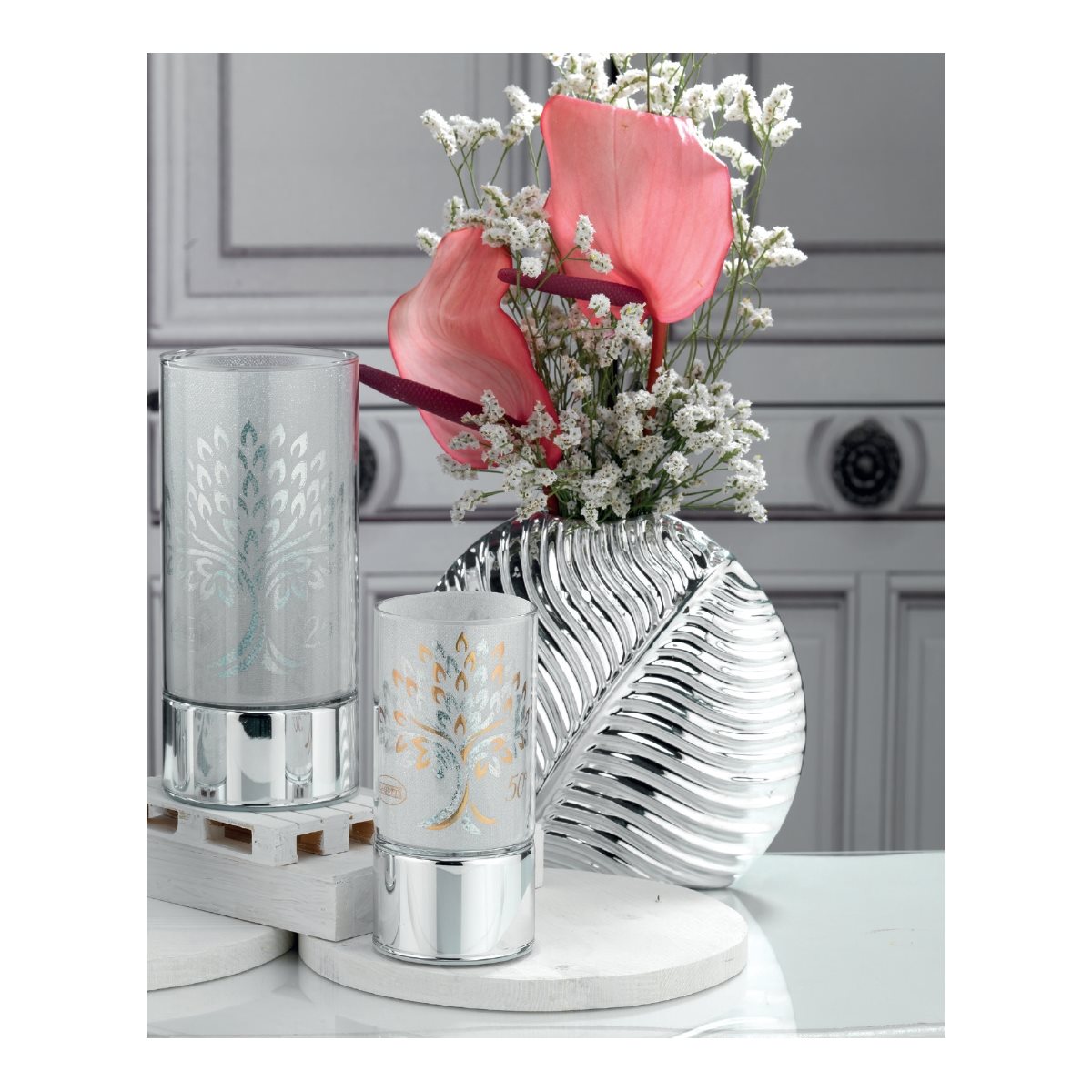 Marca Bagutta Lampade Di ambientazione Eventi e cerimonie 2211-05 nozze d'argento - con cuori argentati - 9 cm X 20 cm Bagutta