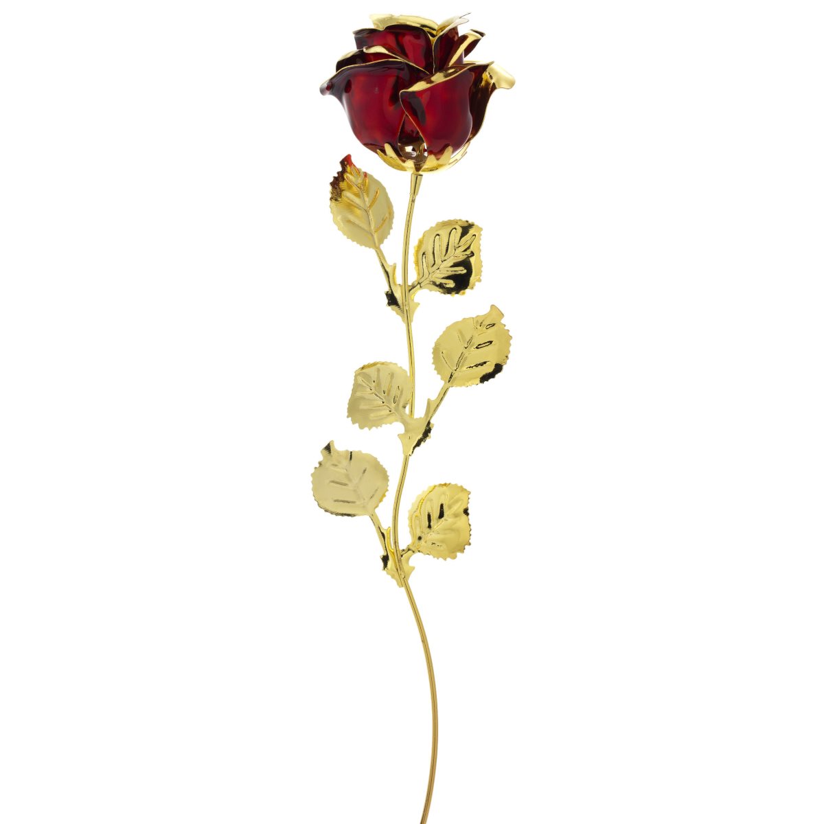 Alla collezione delle rose di Bagutta si aggiunge un nuovo modello dalla lunghezza di 39 cm. Il metallo, ricoperto da un bagno dorato, è modellato con grande cura per riprodurre in maniera dettagliata e realistica il bocciolo e le sei foglie che arricchiscono lo stelo. Nella versione con i petali rivestiti in smalto di colore bordeaux, la rosa sarà un’idea regalo femminile e romantica per occasioni speciali come San Valentino, la Festa della Donna o la Festa della Mamma. Inoltre, attraverso l’aggiunta di un sacchettino di confetti, da agganciare al gambo della rosa o all’astuccio incluso nella confezione, potrà facilmente prestarsi alla realizzazione di una bomboniera fai-da-te, particolarmente adatta al festeggiamento del cinquantesimo anniversario di matrimonio. La confezione regalo è personalizzata con il logo del produttore e contiene la garanzia di qualità.
